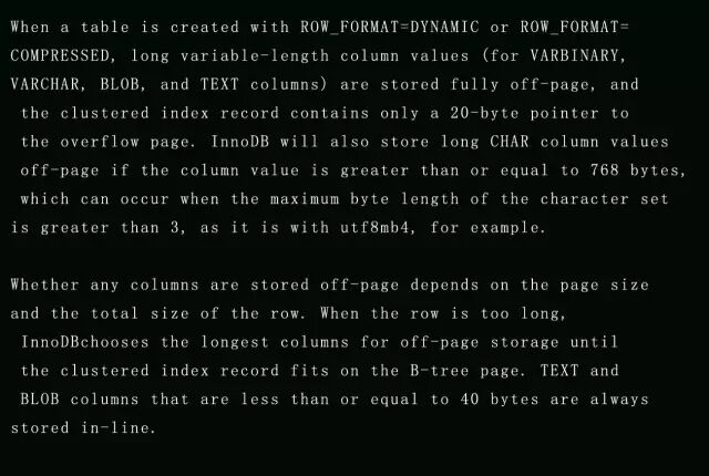 在这种格式记录下Innodb 对于大字段的处理如下: