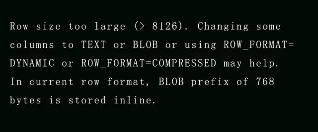 ● 错误3 表创建成功但是插入报 Row size too large (> 8126)