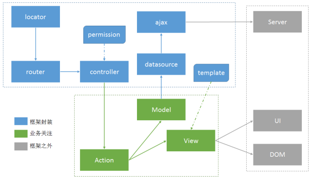 2. 提供精简、核心的 Action、Model 和 View 的抽象,使得构建 RIA 应用变得简单可行。