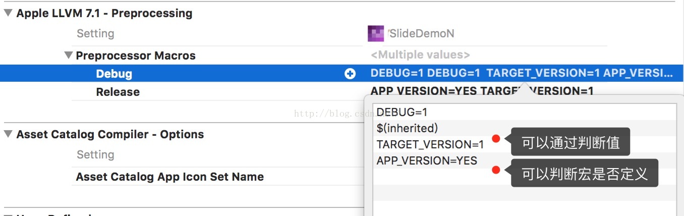 (这是通过宏定义的值进行判断不同的target,比如有多个target时,你可以在不同的Preprocessor Macros中对同一个宏进行不同的值定义,以便判断target)