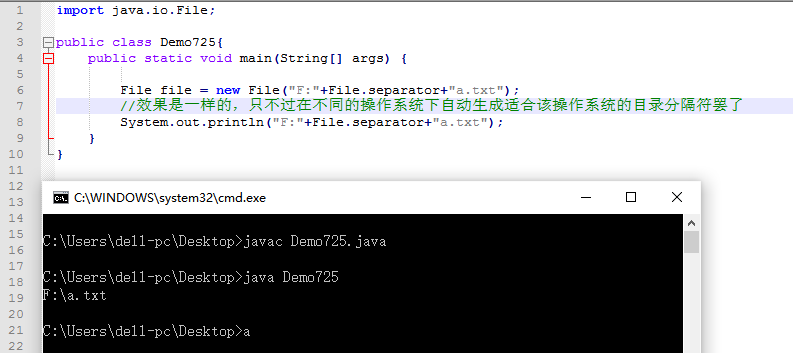 目录分隔符: 在windows机器上 的目录分隔符是 ,在linux机器上的目录分隔符是/ 。