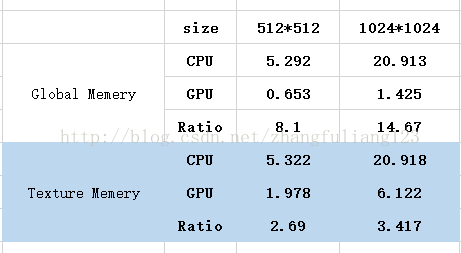 可以看出,使用纹理内存,加速效果并不是很理想,应该是使用一维纹理内存拾取不能达到很好的效果(不是非常确定)。