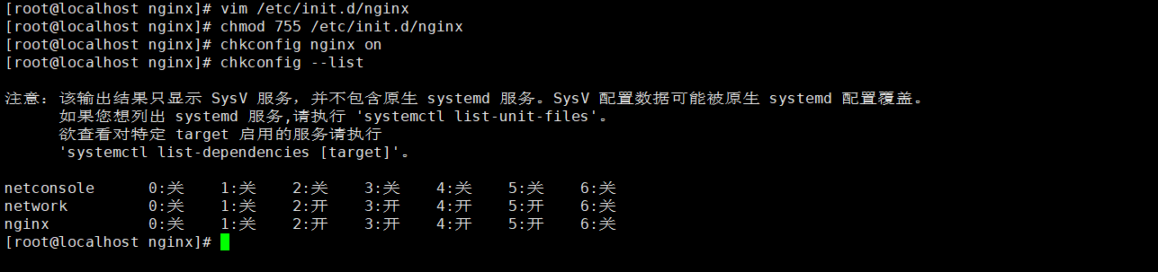 2.1、修改权限:chmod 755 /etc/init.d/nginx