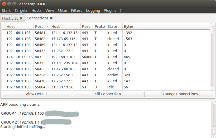 第四,五步:ubuntu下使用ettercap 进行ARP欺骗,伪装成网关