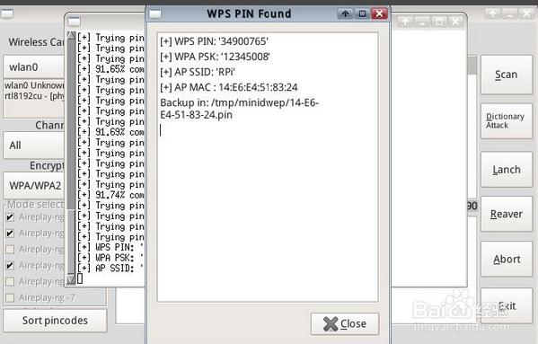 (仅介绍了PIN码的方式,对于没有wps与无法PIN码破解的wifi,可以使用Launch获取握手包(与无线连接时密码传输的数据包),再使用字典暴力破解,主要靠强大的字典和一些运气。也可以获得握手包后保存起来,进入Windows下使用EWSA(Elcomsoft Wireless Security Auditor)进行字典暴力破解)
