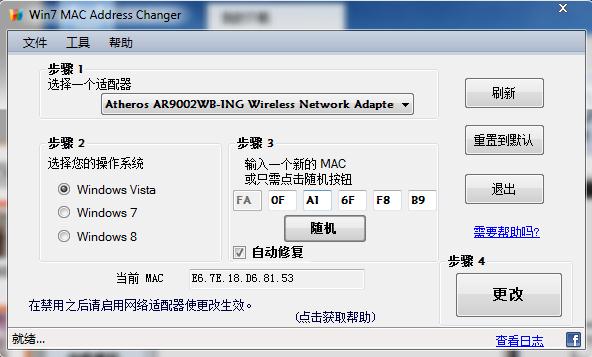 2,Mac地址修改器:修改自己的MAC地址,防止被封