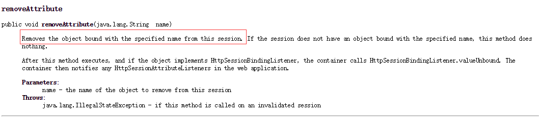 removeAttribute表示移除Session,后面的参数是一个String值,表示要移除的Session名称