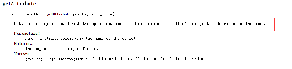 setAttribute表示设置Session,第一个参数是Session的名称,第二个是其值,注意,要是一个对象。红框的意思是说,如果有两个同名的Session,先创建的将被后创建的覆盖
