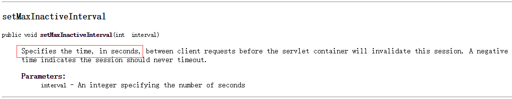 setMaxInactiveInterval表示设置Session的最大失效时间,就是说设置存活多少时间后失效,后面的参数是一个int值,以秒为单位