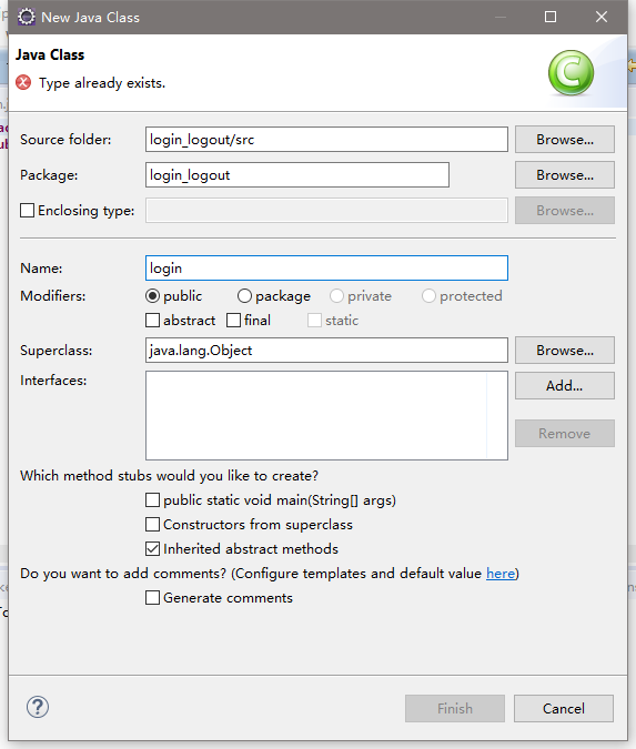 2、在工程名点右键,新建一个类,名为login,来执行登陆操作