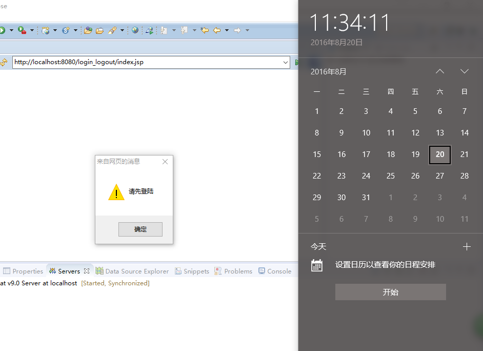 <%@ page language="java" contentType="text/html; charset=utf-8" pageEncoding="utf-8"%> <%@ page import="login_logout.*" %> <% login in = new login(); String name = request.getParameter("user"); String pass = request.getParameter("password"); boolean isLoginSucc = in.Login(name, pass); if(isLoginSucc) { out.println("<script>alert("登陆成功!");window.location.href="../index.jsp"</script>"); session.setAttribute("user", name); session.setMaxInactiveInterval(60); } else { out.println("<script>alert("登陆失败!");window.location.href="../login.jsp"</script>"); } %>
