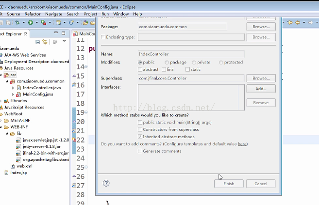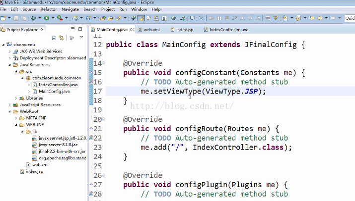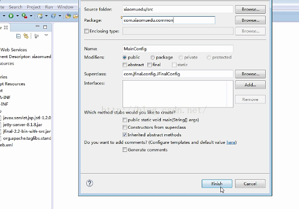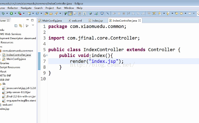 7.下面需要创建一个自定义的Jfinal的配置类MainConfig它继承自JFinalConfig类