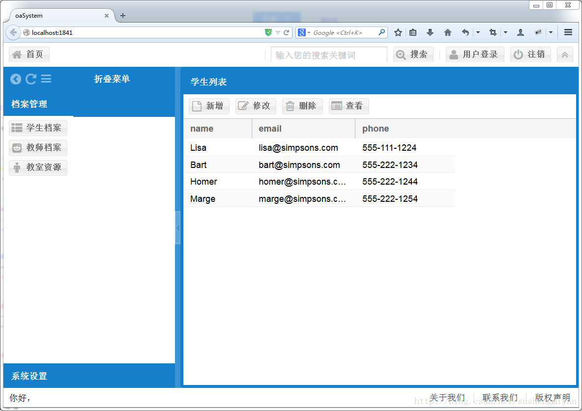 /** * 提取了一个停靠组件的类,方便维护 */ Ext.define("oaSystem.view.main.region.GridToolbar", { extend : "Ext.toolbar.Toolbar", alias : "widget.gridtoolbar", initComponent : function() { this.items = [{ text : "新增", glyph : 0xf016, },{ text : "修改", glyph : 0xf044 },{ text : "删除", glyph : 0xf014 },{ text : "查看", glyph : 0xf022 }]; this.callParent(); } });在Main.js中引入这个文件:
