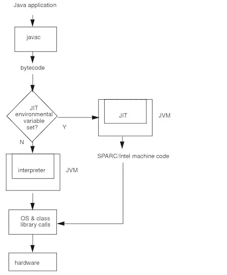 2.4.4. Method Area 在HotSpot JVM的实现中属于非堆区,非堆区包括两部分:Permanet Generation和Code Cache,而Method Area属于Permanert Generation的一部分。Permanent Generation用来存储类信息,比如说:class definitions,structures,methods, field, method (data and code) 和 constants。Code Cache用来存储Compiled Code,即编译好的本地代码,在HotSpot JVM中通过JIT(Just In Time) Compiler生成,JIT是即时编译器,他是为了提高指令的执行效率,把字节码文件编译成本地机器代码,如下图: