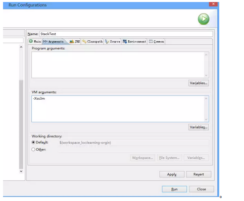 而当我在eclipse中调整了-Xss参数到3M之后,该异常消失