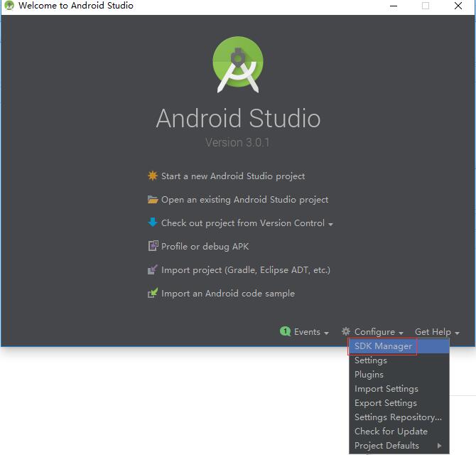 打开后,首先要配置一下安卓SDK的位置。如果已经有默认的了,可以拷贝到新的,你所指定的目录中。