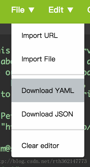 这个用来导出/引入接口文件在swagger edit里面进行编辑,也可以输出YAML/JSON格式。这个如果你是非在线版,编辑一半想下次在编辑,建议先导出备份,避免数据丢失。