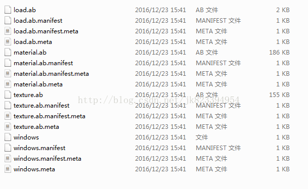 其中以.ab(我们自己指定的)结尾的是我们的AssetBundle包,以.manifest结尾的是该AssetBundle的信息