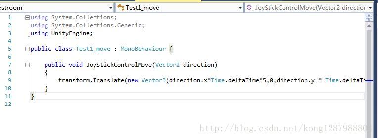 On Move(Vector2):移动摇杆的过程或者摇杆thumb键没有回到原点时将会持续触发,将摇杆每个轴上移动的距离(值范围为-1~1)作为方法参数传入。