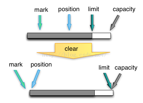 buffer.clear(); 这个方法实际上也不会改变缓冲区的数据,而只是简单的重置了缓冲区的主要索引值,不必为了每次读写都创建新的缓冲区,那样做会降低性能。相反,要重用现在的缓冲区,在再次读取之前要清除缓冲区。