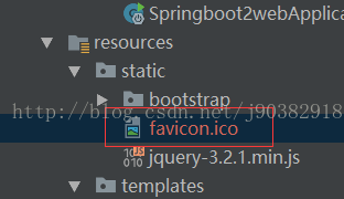 若需设置自己的Favicon,则只需将自己的favicon.ico(文件名不能改动)文件放置在类路径根目录,类路径META-INF/resources/下,类路径resources/下,类路径static/下或类路径public/下。这里将favicon.ico放置在src/main/resources/static下