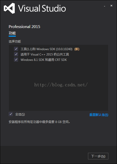 3、如下图所示,勾选所有安装的功能组件,建议将其全部勾选,并点击“下一步”: