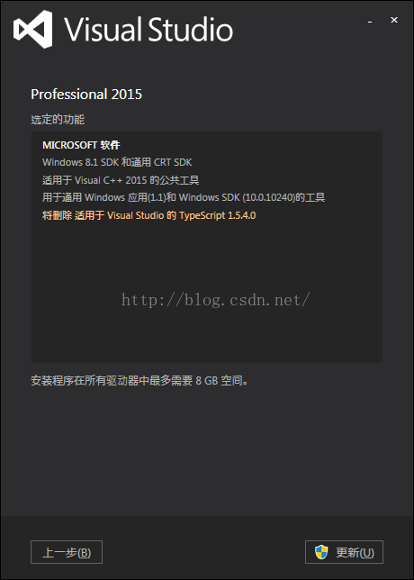 2、如果当前Visual Studio 2015正打开,会提示将其关闭以减少资源的利用,点击继续: