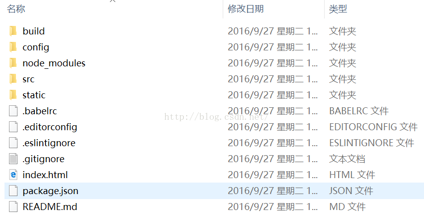 当这个命令运行完成以后会多出一个node_modules文件夹,里面就是项目所需的所有依赖, 可以看到有很多模块,这些模块都是在package.json文件里定义好了的.