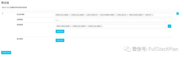 第五步,通过对Cube进行高级设置优化Cube的存储大小和查询速度,主要包括聚合组和Rowkey。在前文我们提到,添加聚合组可以利用字段间的层级关系和包含关系有效地降低Cuboid的数量。在这个案例当中,与商品分类相关的三个字段(METACATEGNAME、CATEGLVL2NAME、CATEGLVL3NAME)实际上具有层级关系,如一级类别(METACATEGNAME)包含多个二级类别(CATEGLVL2NAME),二级类别又包含多个三级类别(CATEGLVL3NAME),所以,我们可以为它们创建层级结构的组合(Hierarchy Dimensions)。最终,聚合组的设计如下图所示: