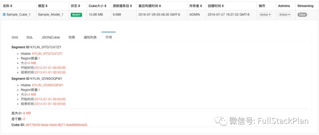 待构建完成,我们可以在Cube的详情页中查看,发现Cube的两个Segment都已就绪。