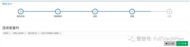 第四步,根据业务需要,从事实表上选择衡量指标的字段作为度量。例如,PRICE字段用来衡量销售额,ITEMCOUNT字段用来衡量商品销量,SELLERID用来衡量卖家的销售能力。最终结果如下图所示:
