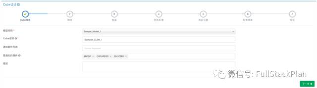 第一步,在“模型名称”中选择SampleModel1,输入新建Cube的名称SampleCube1,其余字段保持默认,然后单击“下一步”。