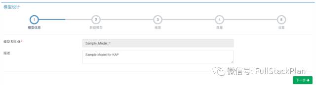 第一步,在基本信息页,输入模型名称为SampleModel1,然后单击下一步。