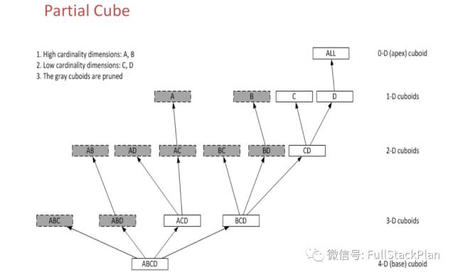 Hierarchy - 层级维度:如果多个维度之间有层级(或包含)的关系,通过设置为“Hierarchy”,那些不满足层级的组合会被剪枝。如果A, B, C是层级,并且A>B>C,那么只需要计算组合A, AB, ABC; 其它组合如B, C, BC, AC将不做预计算。
