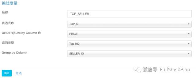 因此,我们创建一个TOP-N的度量,选择PRICE字段作为SUM/OPDER BY字段,选择SELLER_ID字段作为GROUP BY字段,并选择TOPN(100)作为度量的精度。