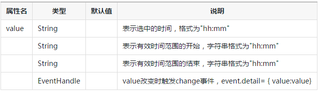 <picker mode="time" value="{{time}}" start="09:01" end="21:01" bindchange="bindTimeChange">
