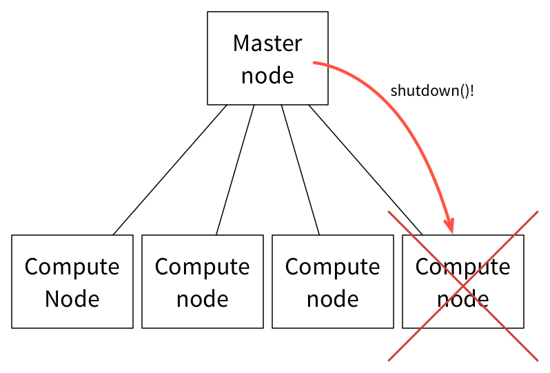 当计算节点/Slave节点无法响应多个连续的消息后,Master会从可用资源的列表中删除该节点,并会尝试关闭该节点。