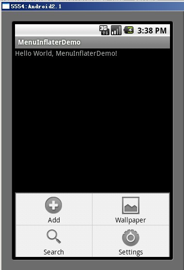 四、运行代码之,点击模拟器上的menu按钮将会出现上述效果图!