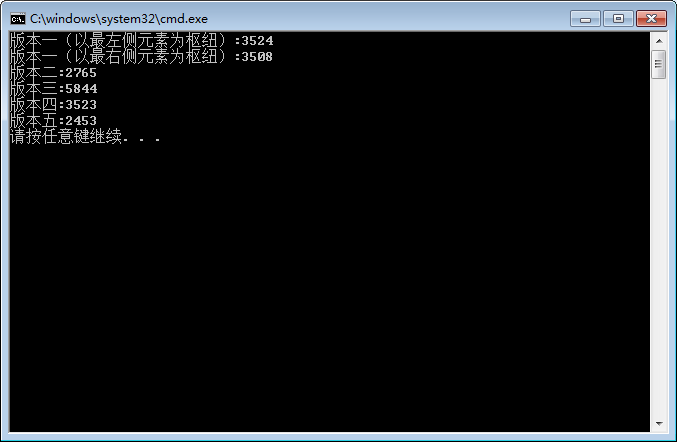 cout << "版本一(以最右侧元素为枢纽):" << time3 - time2 << endl;