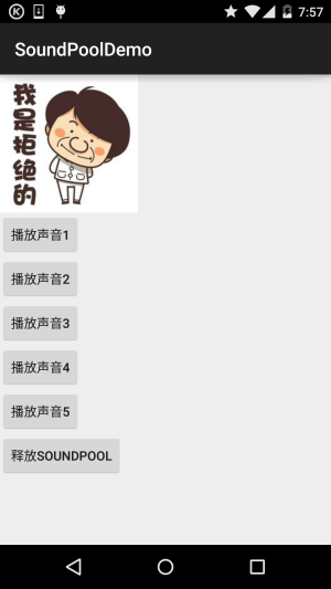 代码非常简单,另外如果你点击了最后一个按钮的话,SoundPool就会被释放,然后再其他按钮 就不会Duang了哦~