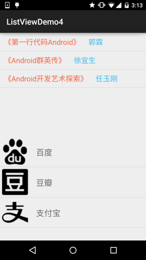 就是上面有两个列表,布局不一样,但是我只使用一个BaseAdapter类来完成上述效果!