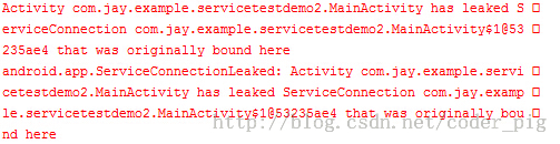 如果我们再绑定后直接关掉Activity的话会报错, 然后会自动调用onUnbind和onDestory方法!