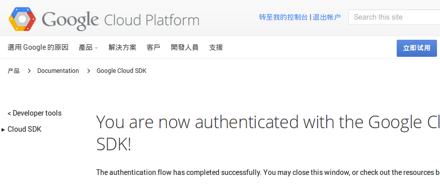 在上图中,官方给的安装流程中,接下来就是要用一个账号登录google云。关闭前面安装时使用的shell,然后新打开一个,输入命令gcloud auth login,会打开浏览器,出现下图