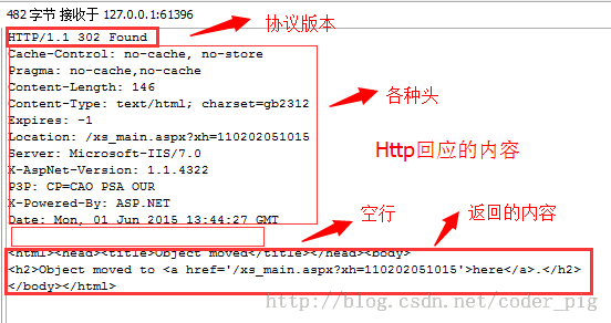 同样给出上节的图: PS:第一行依次是:协议版本号 状态码 302表示这里没有,但是另外一个地方有,通过Location页面重定向了