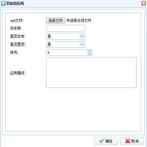 不仅介绍了app信息的输入项,而且是否发布,是否置顶,序号都加上默认值。只有特殊情况,再进行选择!添加app的时候,几乎只需要上传apk就行了!大大减少了用户操作!