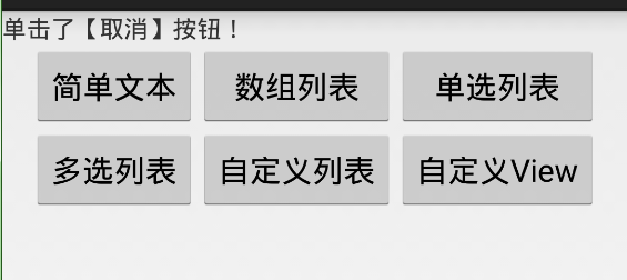 3,调用Builder对象的相关方法设置内容,AlertDialog提供如下六中设置指定对话框的内容: