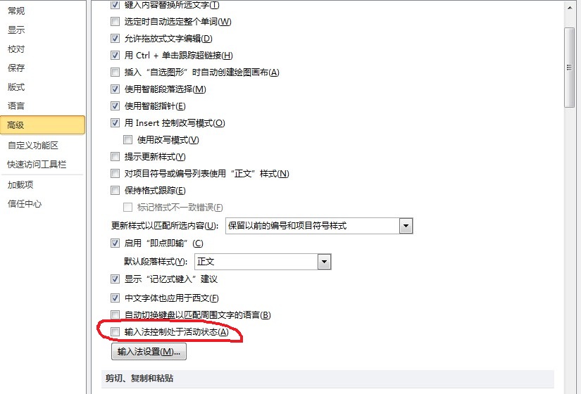 将“输入法控制处于活动状态”前面的勾去掉 然后一路 “确定” 然后重新启动word 再看看屏幕右下方的是不是已经变成下面这个样子了呢