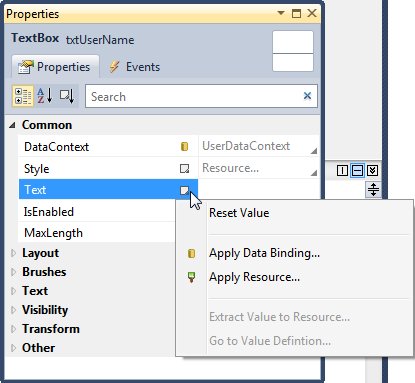 选择Common - DataContext,然后选择“Apply Data Binding.." 选择数据源
