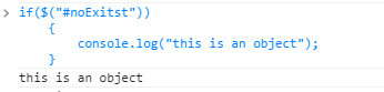 不过需要注意的是上述方法$()获取的永远是对象,即便网页上没有取到元素。如下图实例: